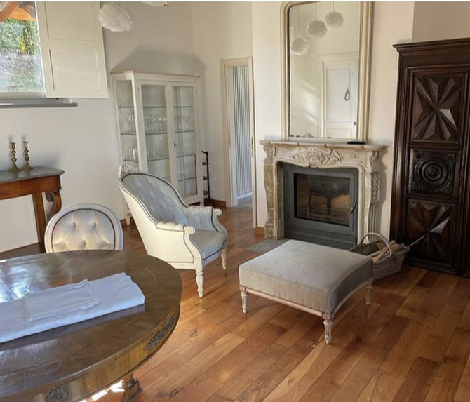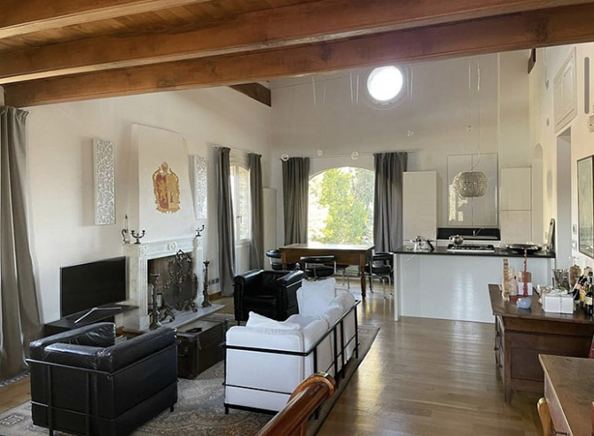 Pavimenti in legno, tavoli d’epoca e camino…